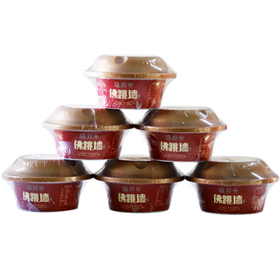 除大連海參外,將鮑魚、花膠、裙邊、螺片、干貝、蹄筋、花菇這些珍貴的食材,經(jīng)科學(xué)配比,再與精心熬制的高湯融合,制作成開袋加熱即食的佛跳墻。